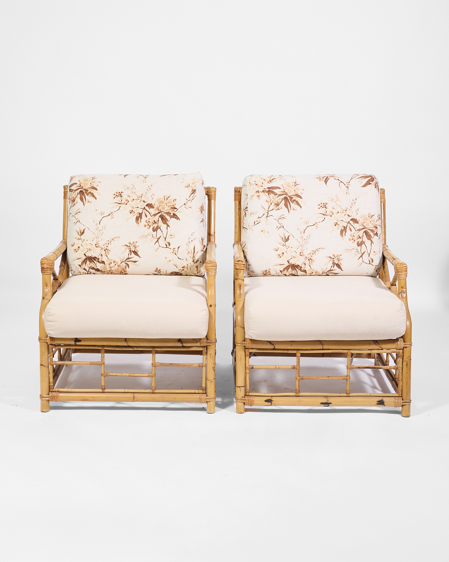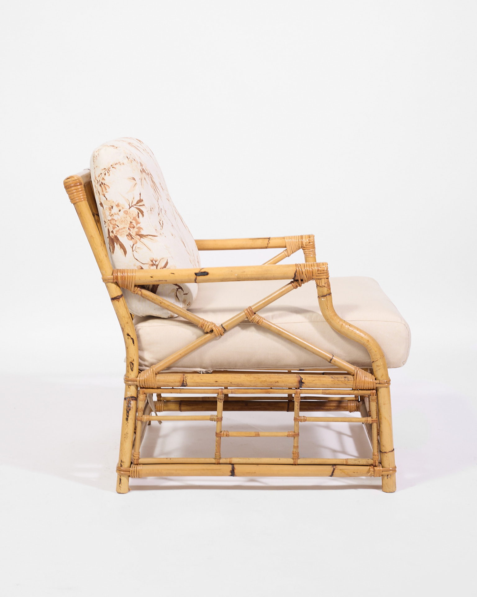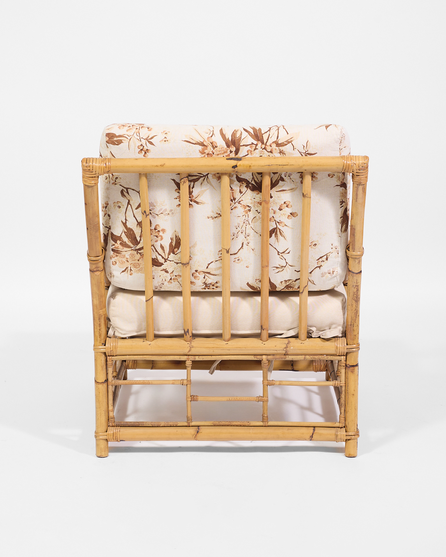 Poltrone in bambú con cuscini in tessuto