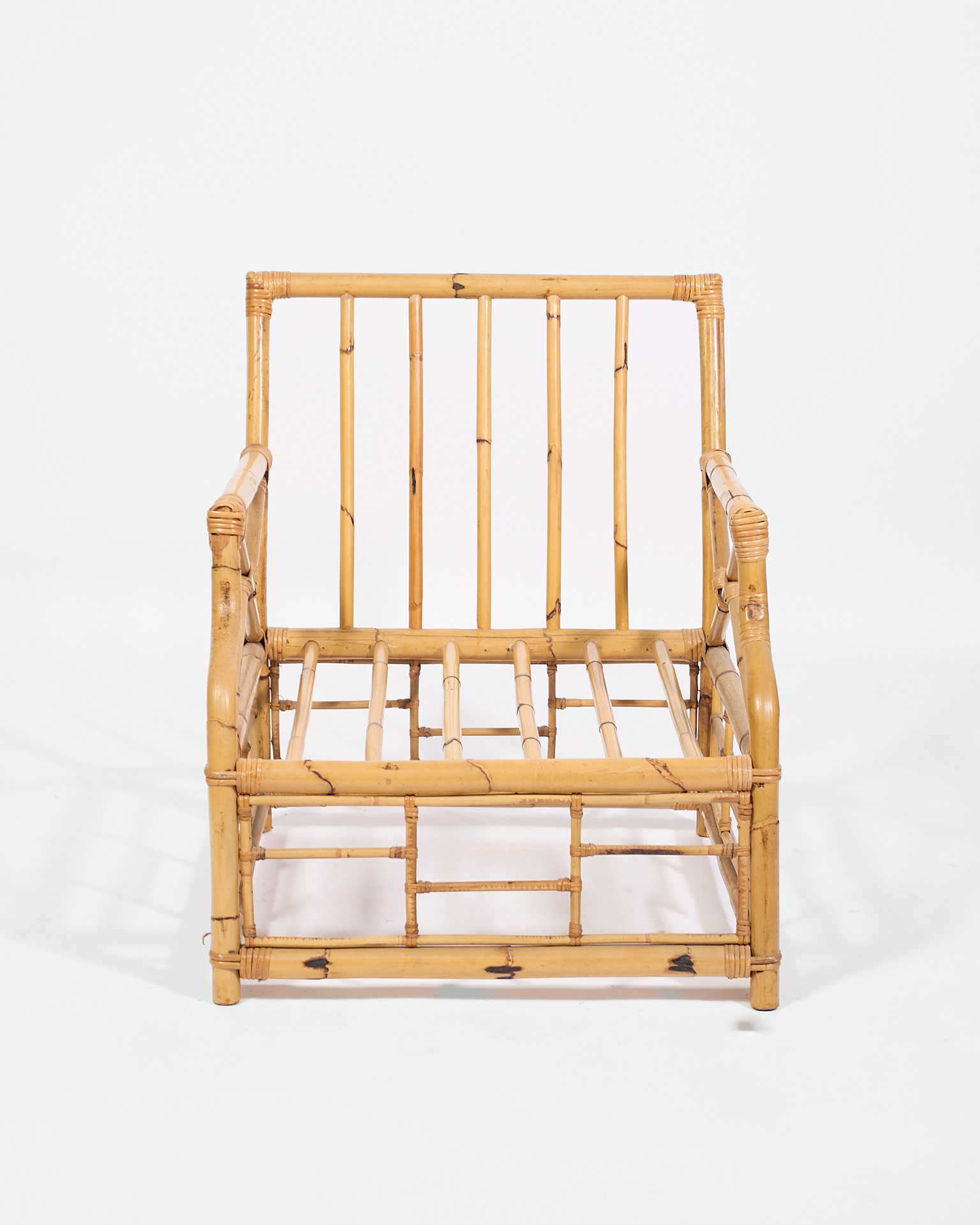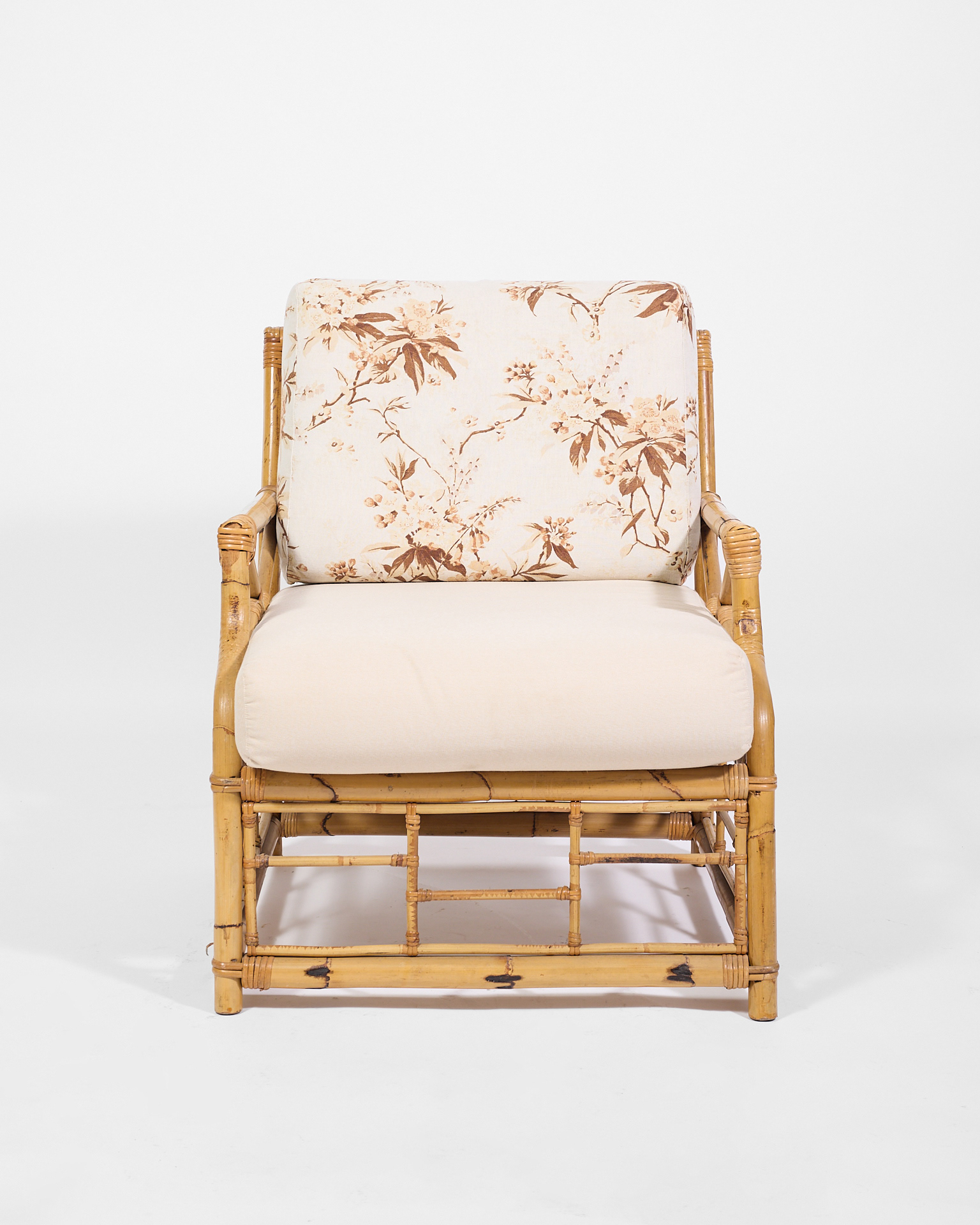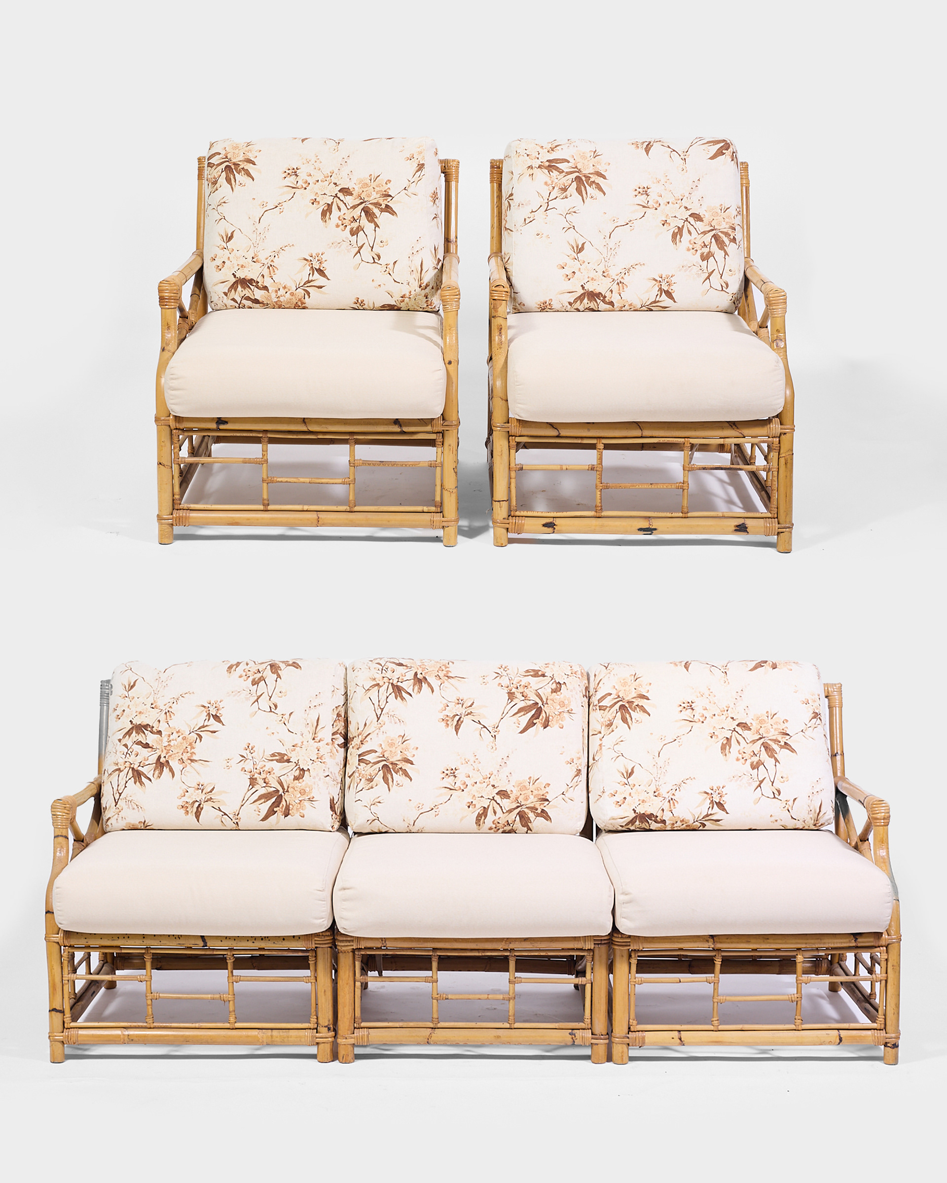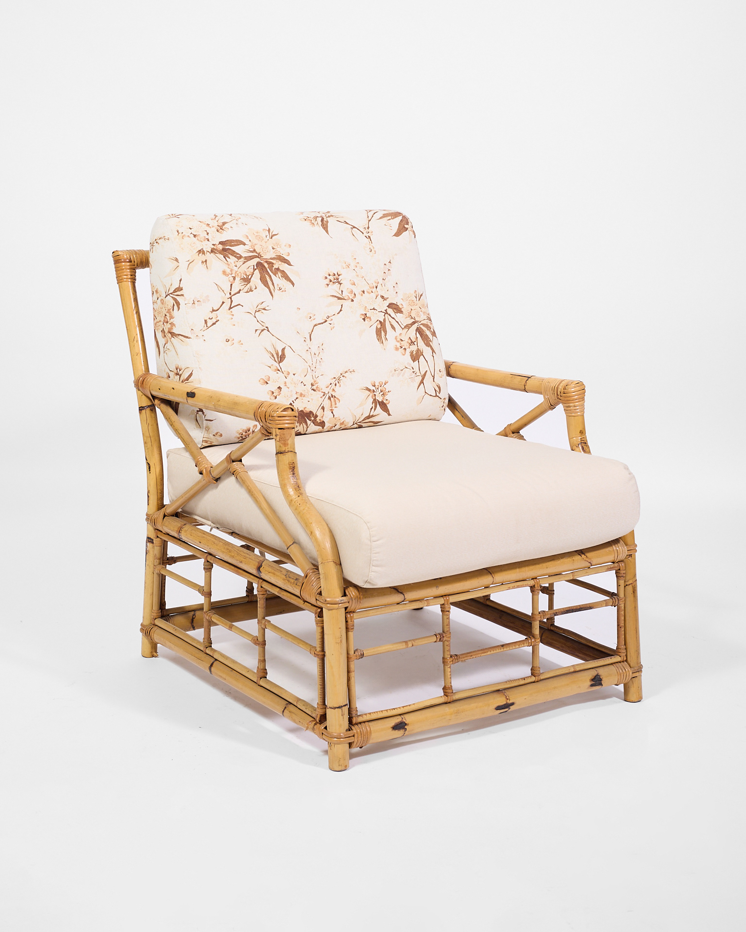 Poltrone in bambú con cuscini in tessuto