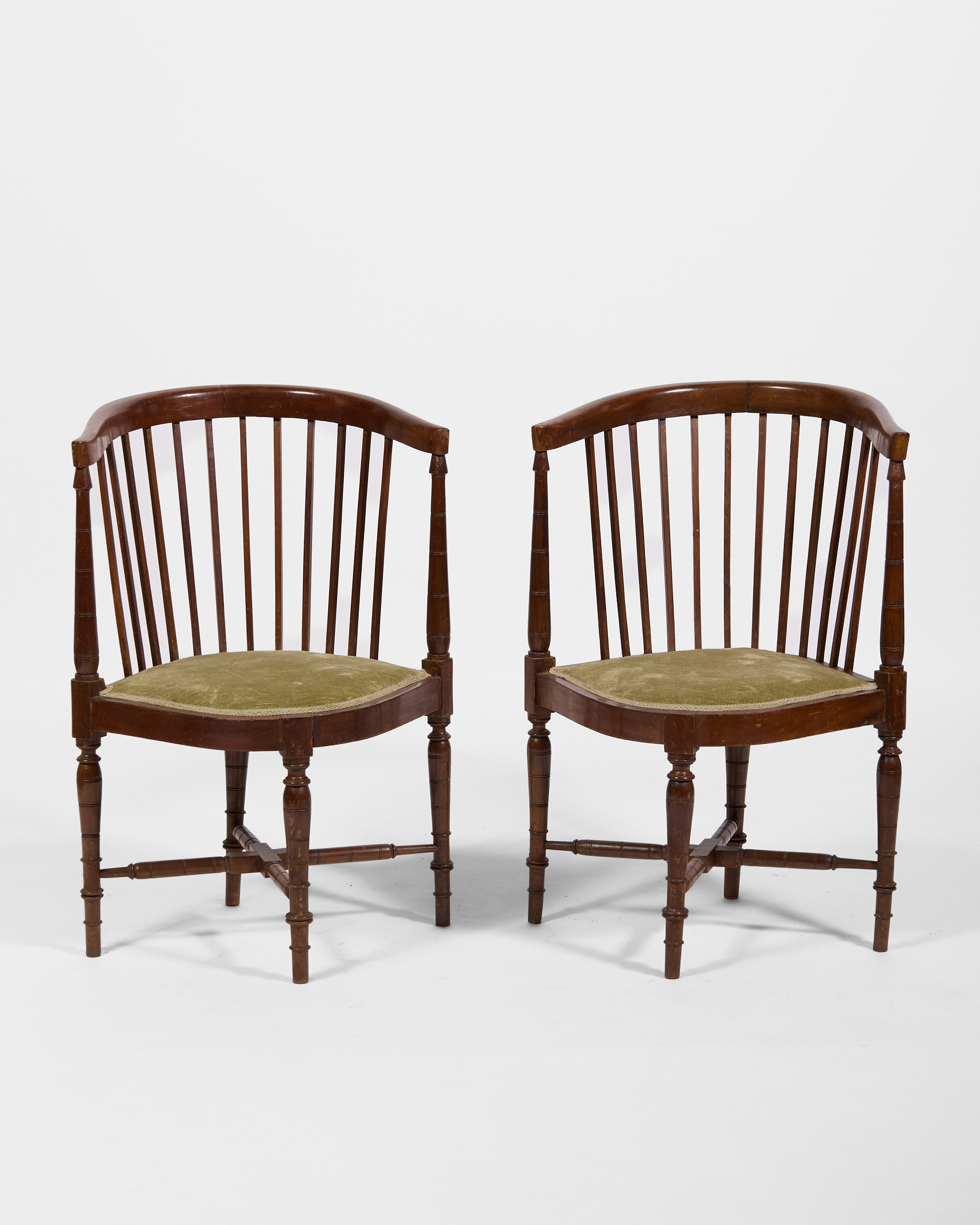 Sedie angolari in legno e velluto