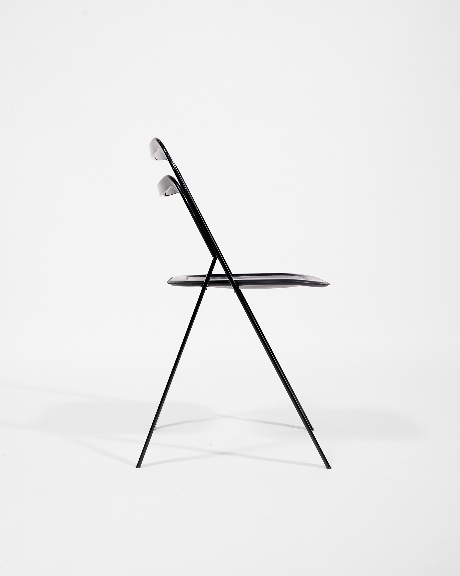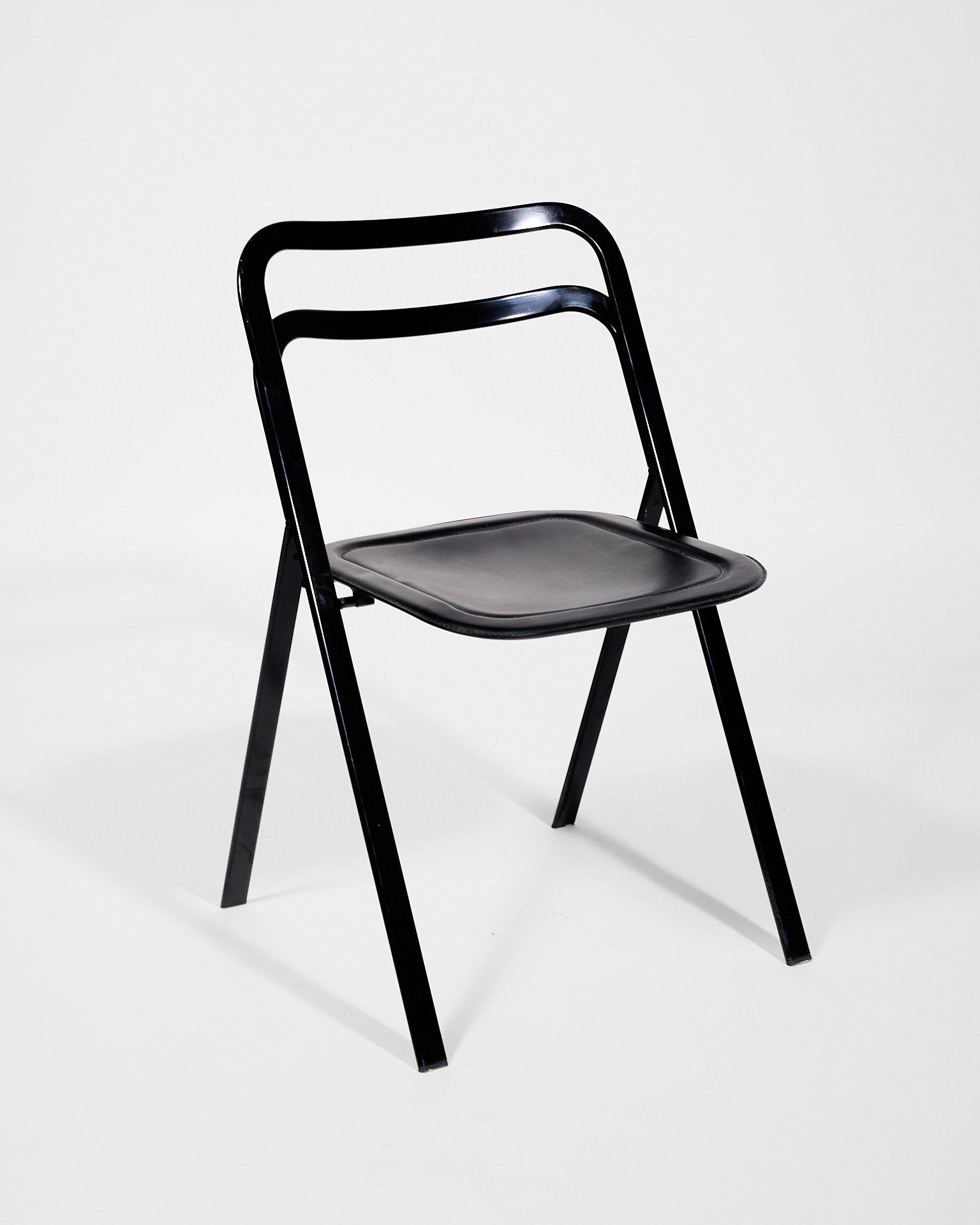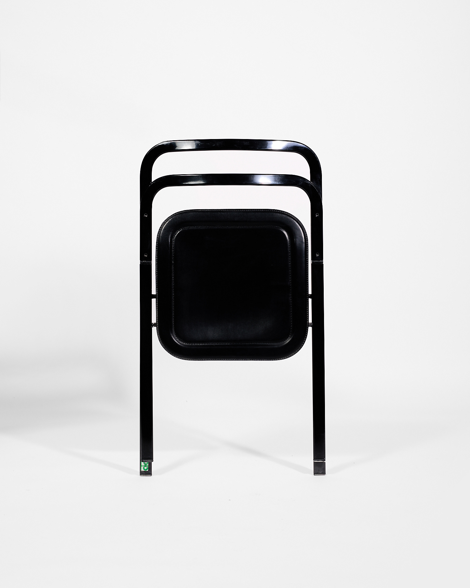 Sedie pieghevoli nere in ferro e pelle di Cattelan