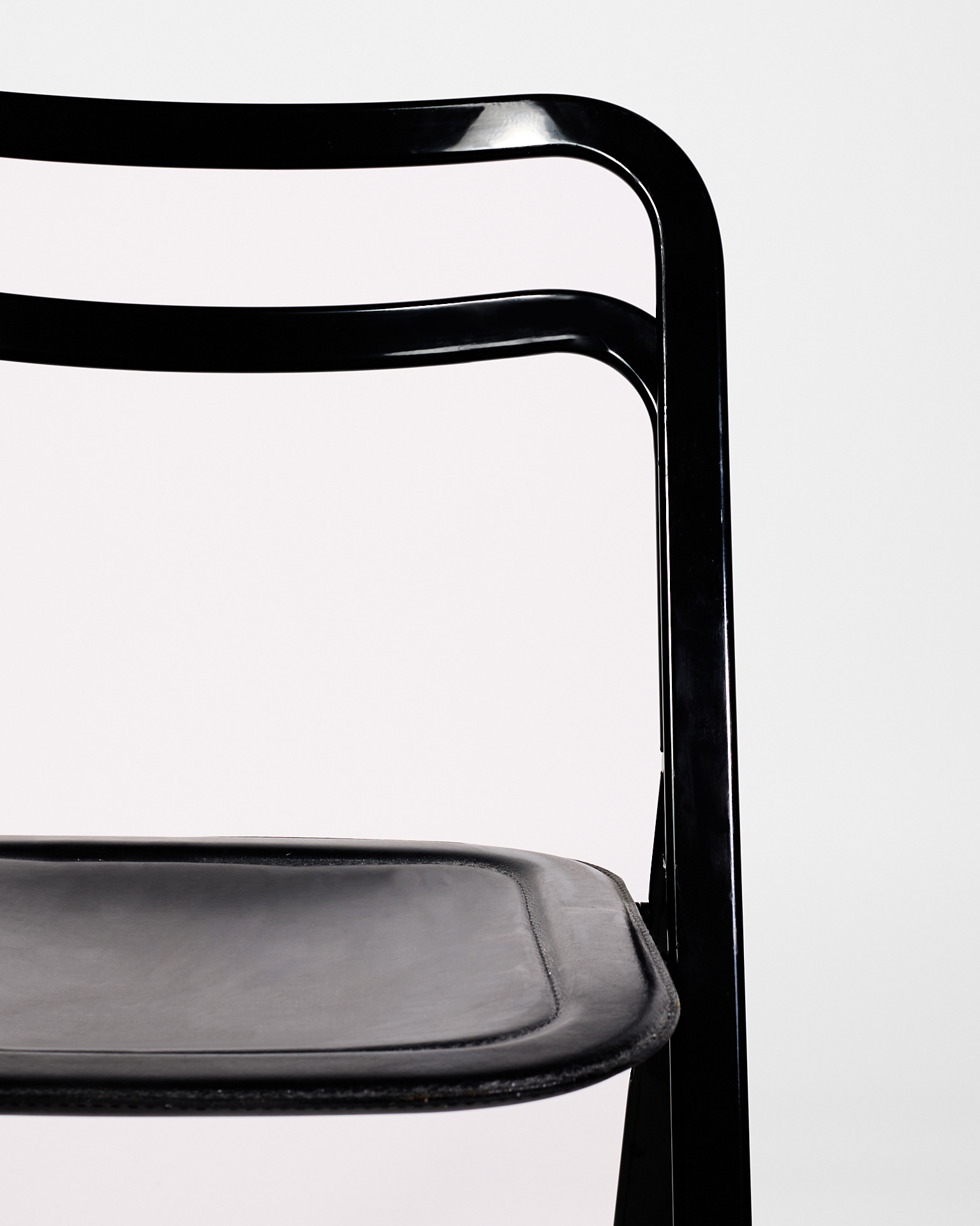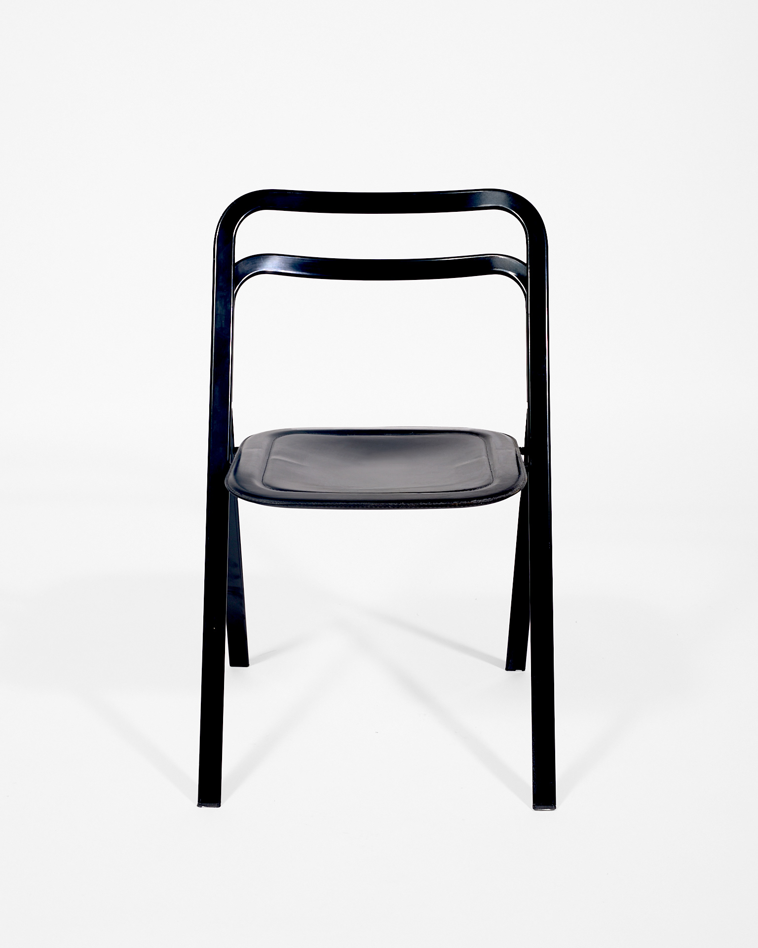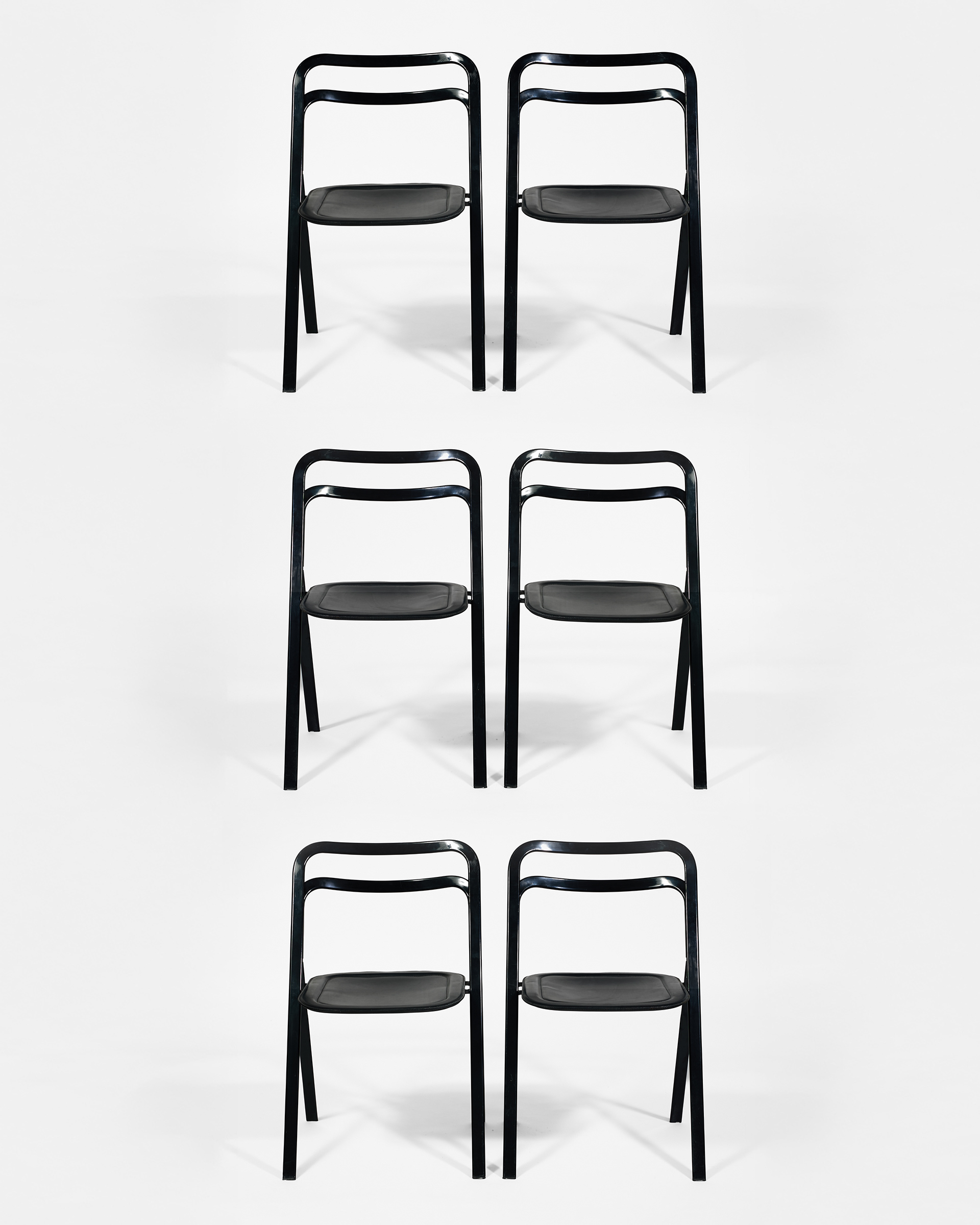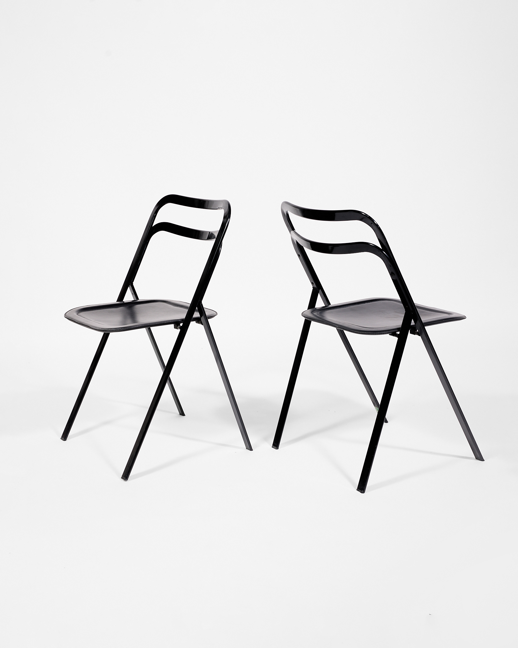 Sedie pieghevoli nere in ferro e pelle di Cattelan